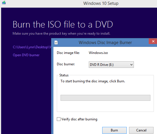 Now I have a DVD that I can use over and over to install Windows 10 Pro on multiple work stations. Of course, if you are upgrading just your own system, you could do it by going through the download process.
