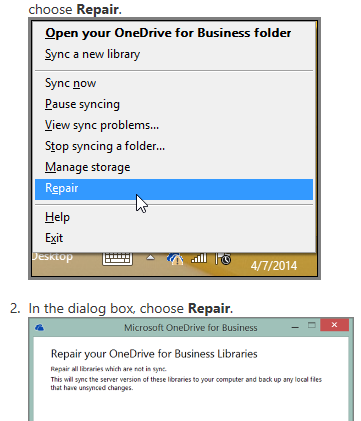 Follow these quick steps to repair a sync connection with OneDrive for Business, and see if that fixes your sync problem.