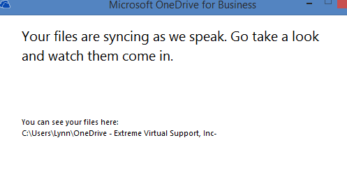 I clicked the Sync now and then got the next pop-up and everything started syncing! I repeated the same process for all the SharePoint sites (I did have to send a share/sync request from the admin’s account), and the Sites started and finished syncing – success!