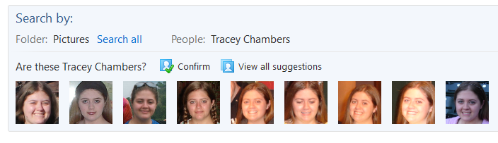 In the screenshot below, I’ve clicked on my daughter’s face and I get a sorting of all the photos it can find with her in it – this is so cool!